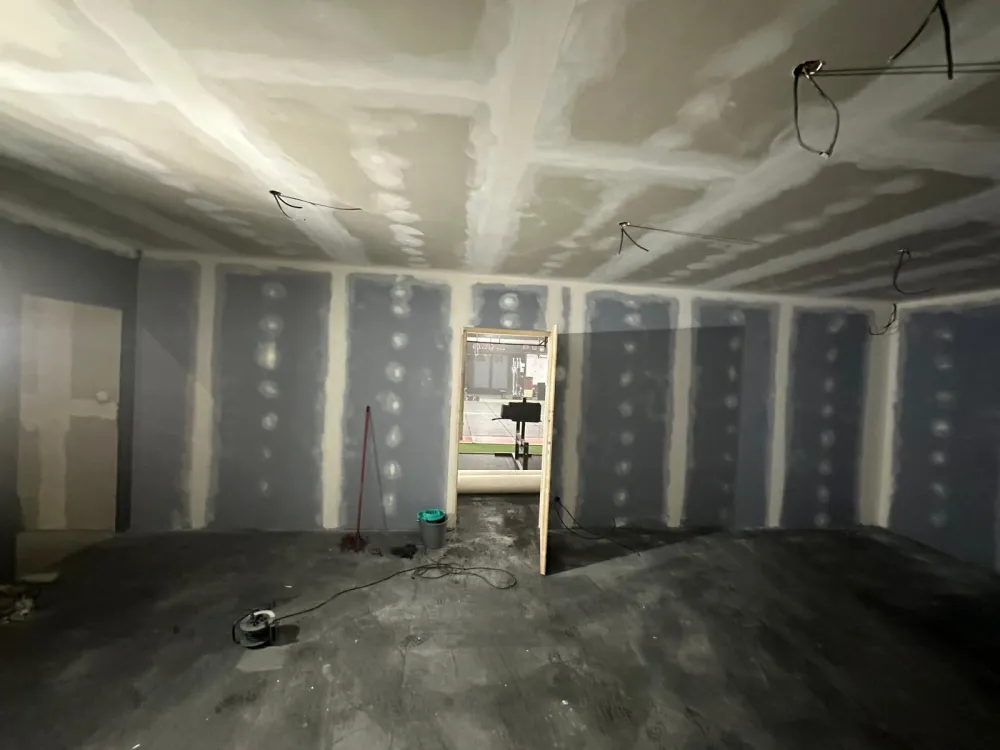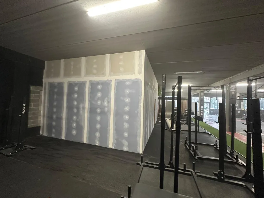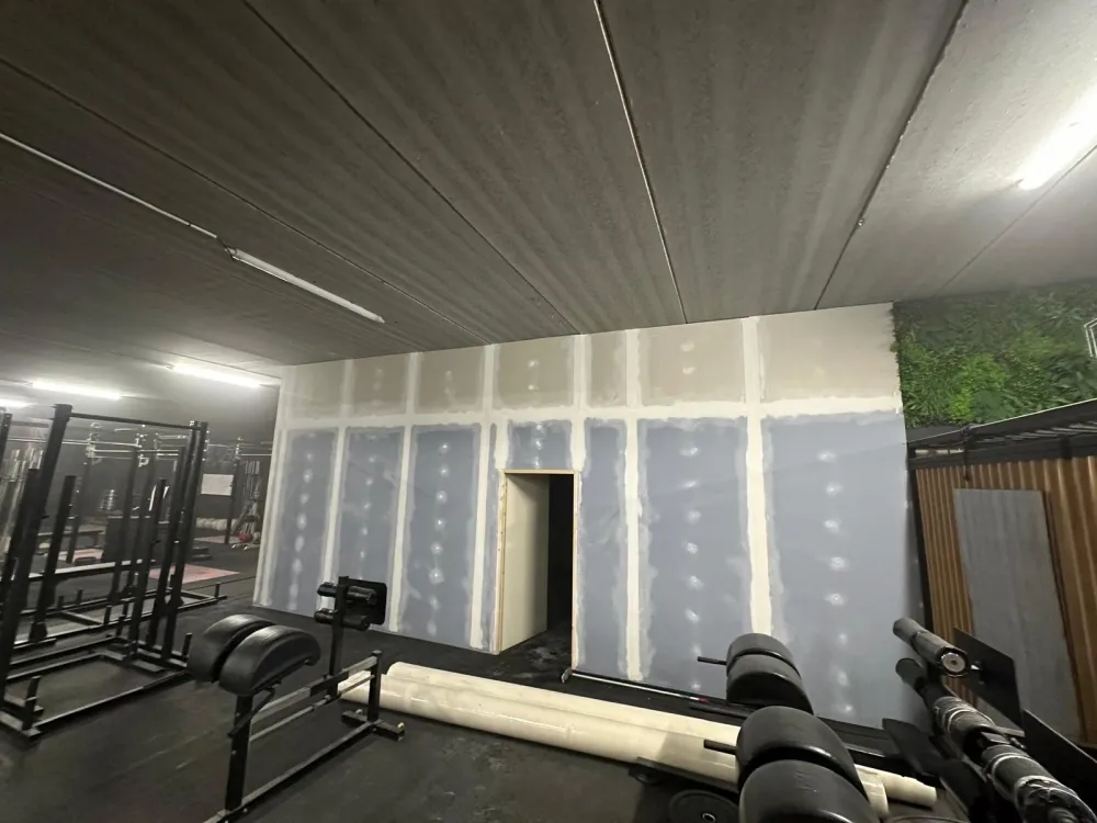 Création de cloisons et plafonds pour une salle de formation dans une salle de sport.